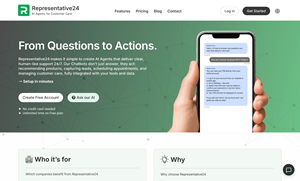 Representative24 is an AI customer experience platform designed to transform customer care into a growth engine. Unlike traditional chatbots, Representative24’s AI Agents act directly within conversations, adapt across industries, and integrate with business systems. With multilingual capabilities, API-driven setup, and a flexible “Free Forever” plan, the platform enables businesses of all sizes to adopt AI-powered customer engagement at scale.
